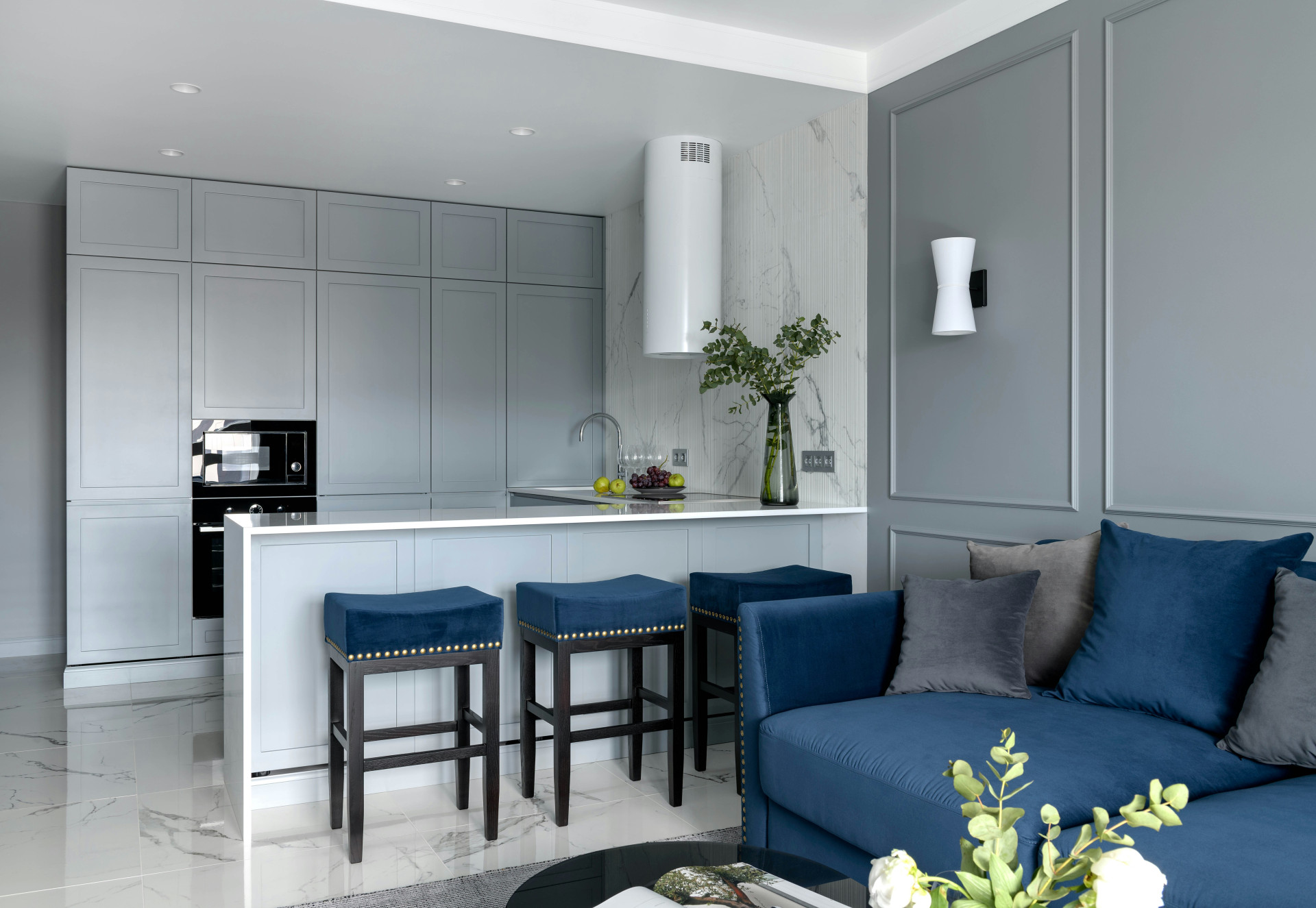 Selvom et åbent køkken giver sammenhæng, kan det være rart at markere forskellige zoner, så rummene stadig har hver deres funktion. En køkkenø eller en lav reol kan fungere som en naturlig afgrænsning mellem madlavningsområdet og spisepladsen. Tæpper, planter eller forskellig belysning kan også bruges til at skabe bløde overgange uden at bryde flowet.
